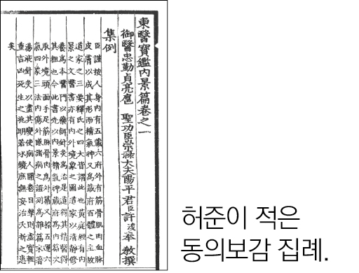 위의 문장은 『東醫寶鑑』에서 허준 자신이 직접 적은 것으로 凡例의 성격을 띤 ‘集例’라는 제목의 글의 일부분이다. 이 글은 『東醫寶鑑』의 5편의 내용 구성에 대해 설명하고 있다. 아래에서 內景, 外形, 雜病, 湯液, 鍼灸의 『東醫寶鑑』5개의 篇에 대한 설명에 해당하는 문장들을 먼저 모아보고, 전체편의 구조와 그 구조화의 목표를 담고 있는 글들을 구분해서 살펴본다.