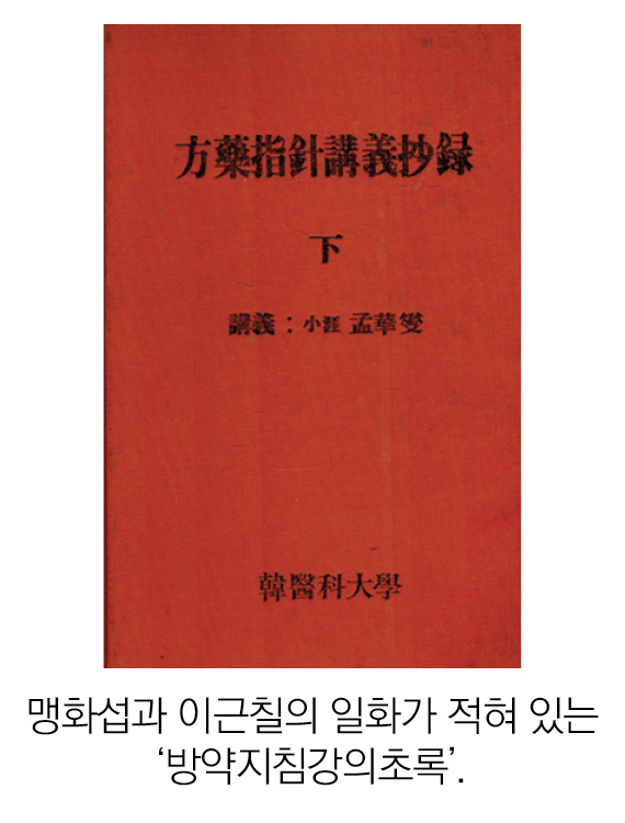 kni-web[한의신문] 孟華燮 先生의 강의를 녹취해 간행한 『方藥指鍼講義抄錄』(1985년)에는 다음과 같은 내용이 적혀 있다.
