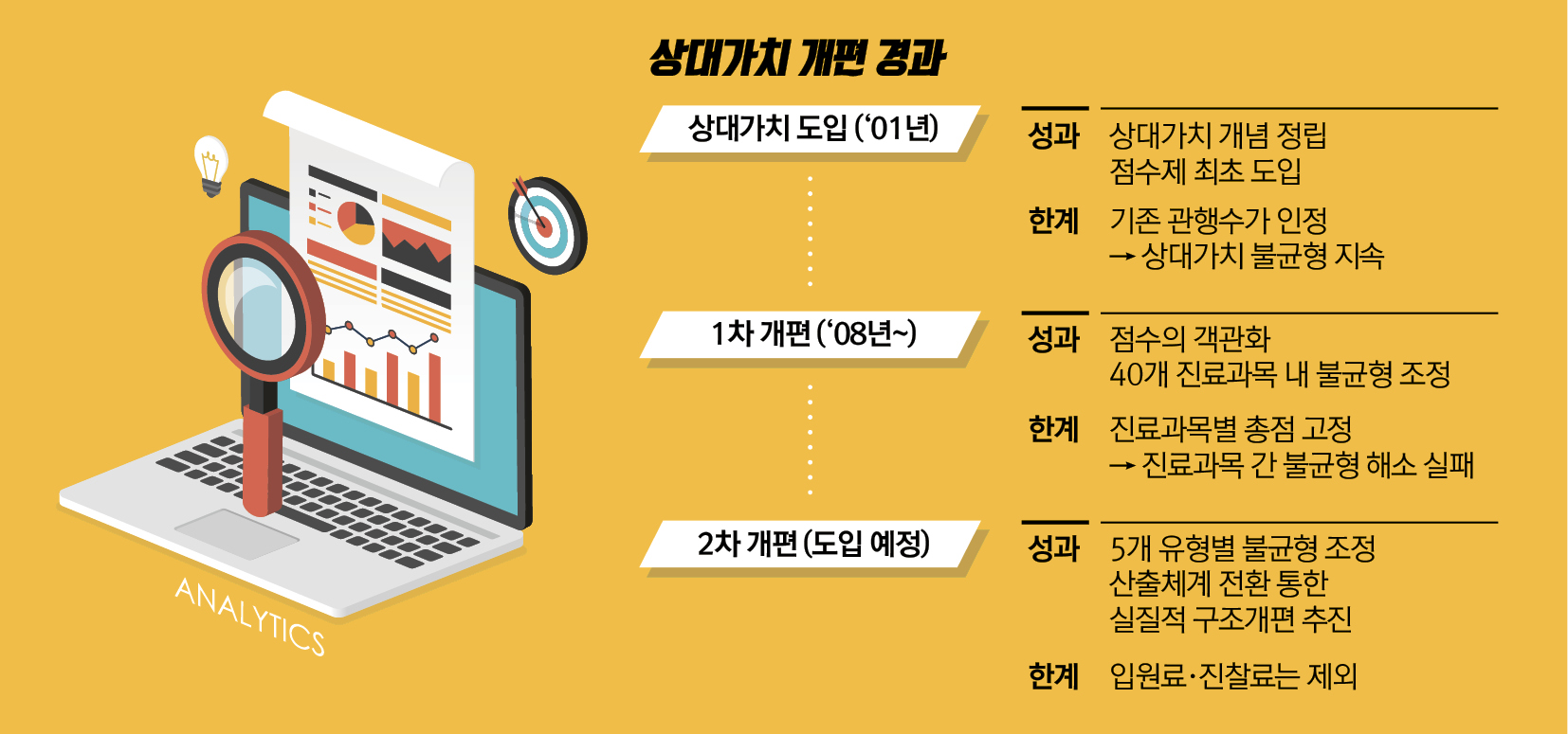 한편 대한한의사협회(이하 한의협)는 상대가치제도 도입 당시부터 불합리하게 제도가 시행됨에 따라 야기된 문제가 아직까지도 개선되지 못한 채 현재까지 이어짐에 따라 상대가치점수 개편 때마다 문제가 발생하고 있다는 판단에 따라 3차 상대가치 개편에서는 침구행위 정의 및 상대가치 산출 등을 보다 근본적인 차원에서 개선될 수 있도록 만전을 기한다는 방침이다.