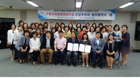 [한의신문=최성훈 기자]수원시한의사회(이하 수원분회)는 수원시청 중회의실에서 수원시국공립어린이집연합회와 건강주치의 업무협약을 맺었다고 지난 14일 밝혔다.