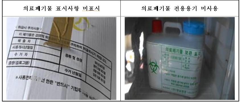 한편 의료폐기물을 부적정하게 처리하거나 무허가 폐기물의 수거 행위는 3년 이하의 징역 또는 3000만원 이하의 벌금을 받게 되고, 의료폐기물 표시를 하지 않거나 보관기간 등의 위반 행위는 1000만원 이하의 과태료가 부과된다.