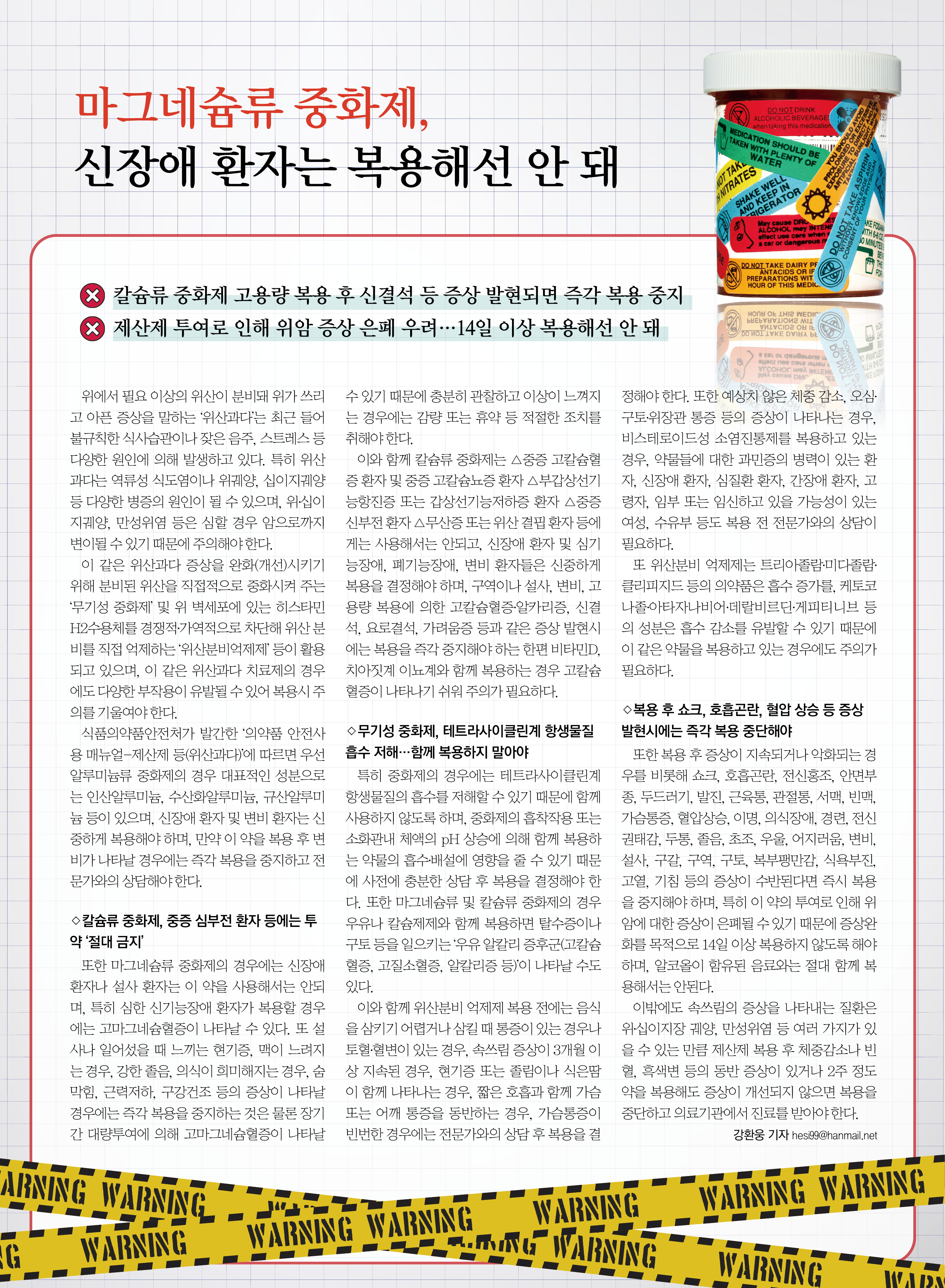 마그네슘류 중화제, 신장애 환자는 복용해선 안 돼