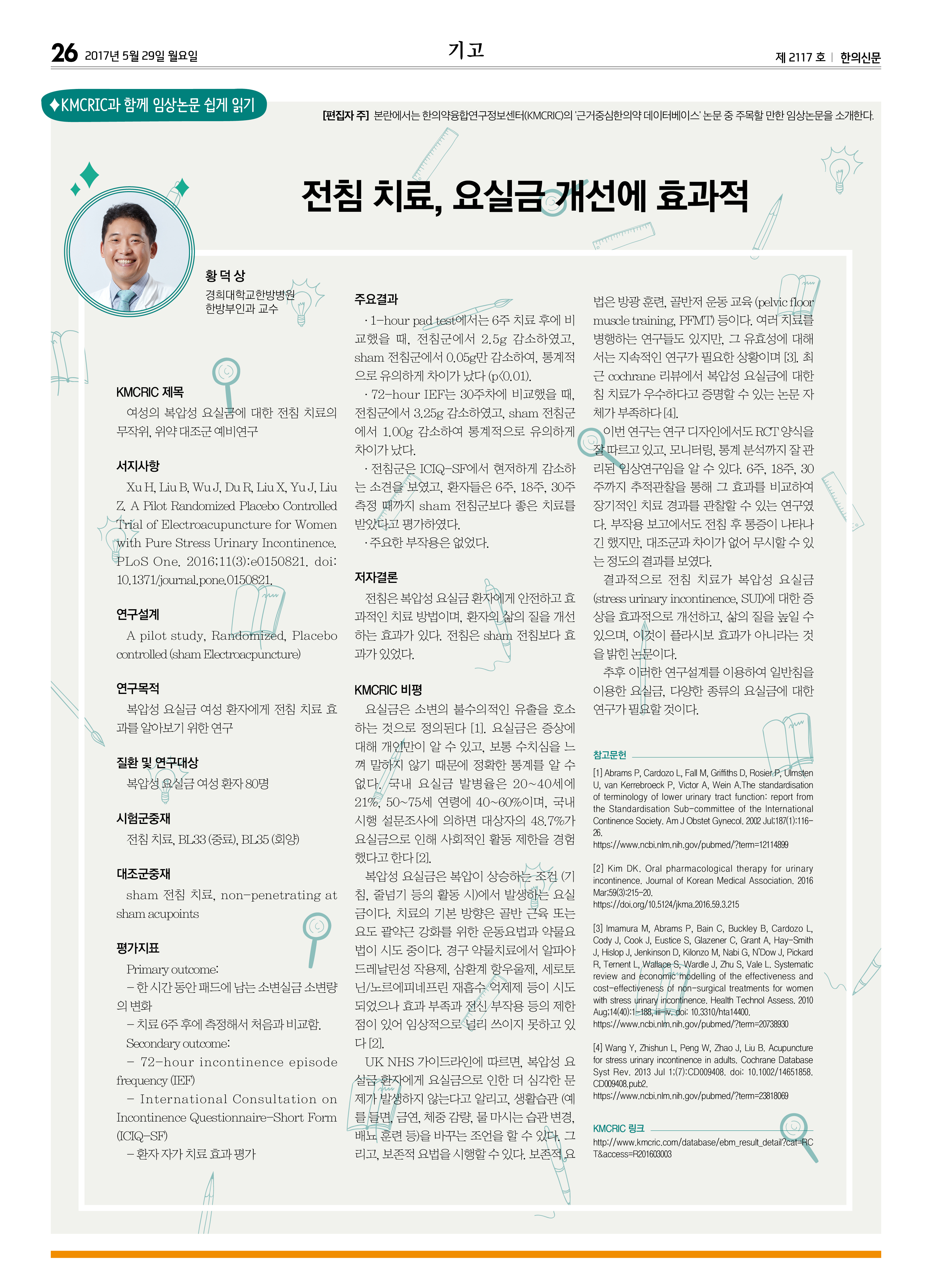 [편집자 주] 본란에서는 한의약융합연구정보센터(KMCRIC)의 '근거중심한의약 데이터베이스' 논문 중 주목할 만한 임상논문을 소개한다.