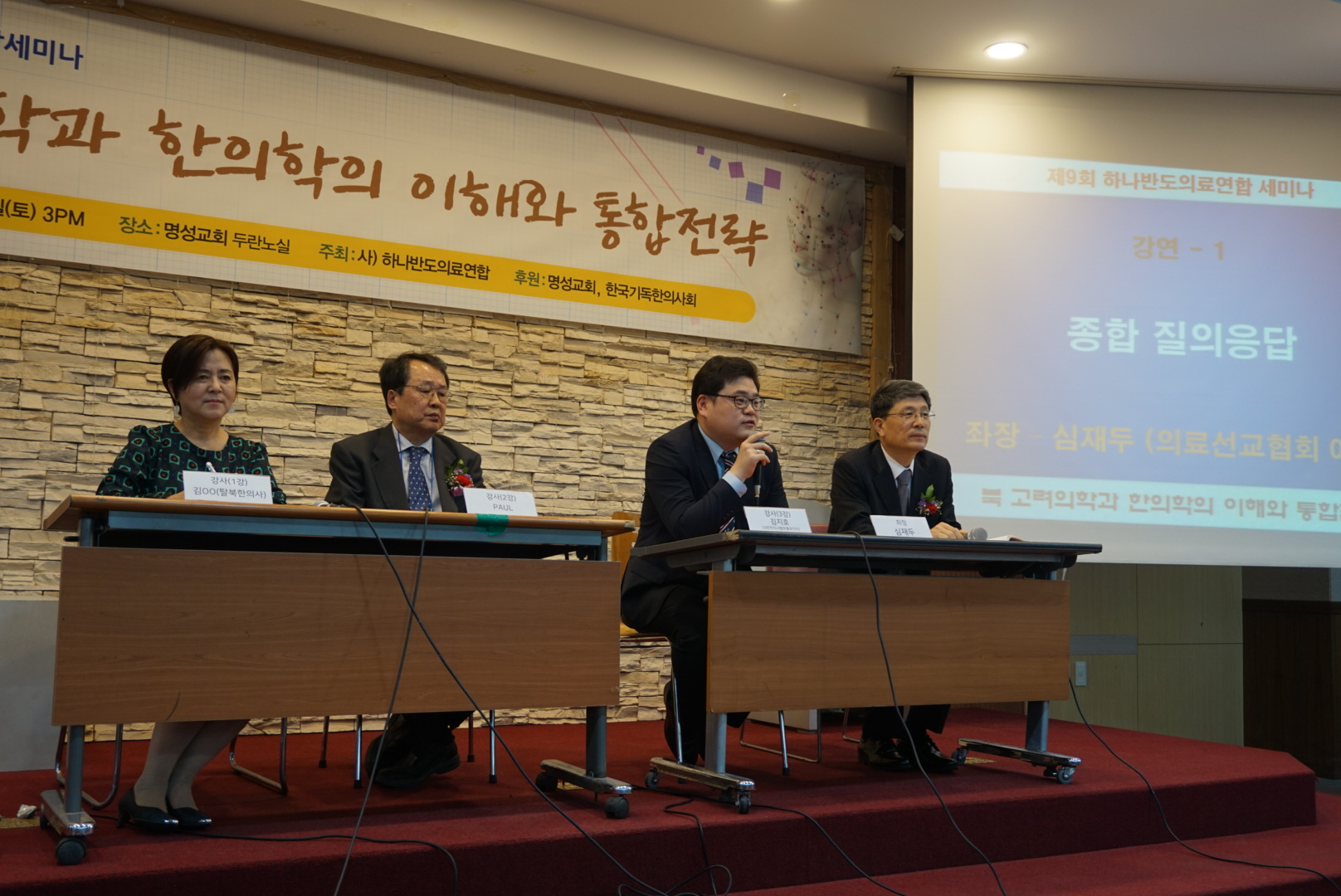 통일부 인가 사단법인 하나반도의료연합 주최로 지난달 29일 명성교회에서 열린 ‘북한 고려의학과 한의학의 이해와 통합전략’ 세미나는 1부에서는 김 모 탈북 한의사가 ‘한의학과 고려의학의 상호 이해’에 대해, 2부에서는 Paul CCV 대표(흉부외과 의사)가 ‘북에서 본 고려의학 그리고 남북의료 통합을 위해 준비할 것’에 이어 김지호 대한한의사협회(이하 한의협) 홍보이사가 ‘한의학, 고려의학, 의학의 통합 방향’을 주제로 발표했다.
