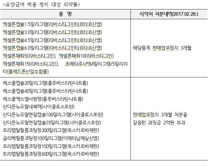 글리벡 등 18개 품목은 대체의약품 있어 과징금 적용 대상 아냐…건강보험 적용 즉각 중지해야