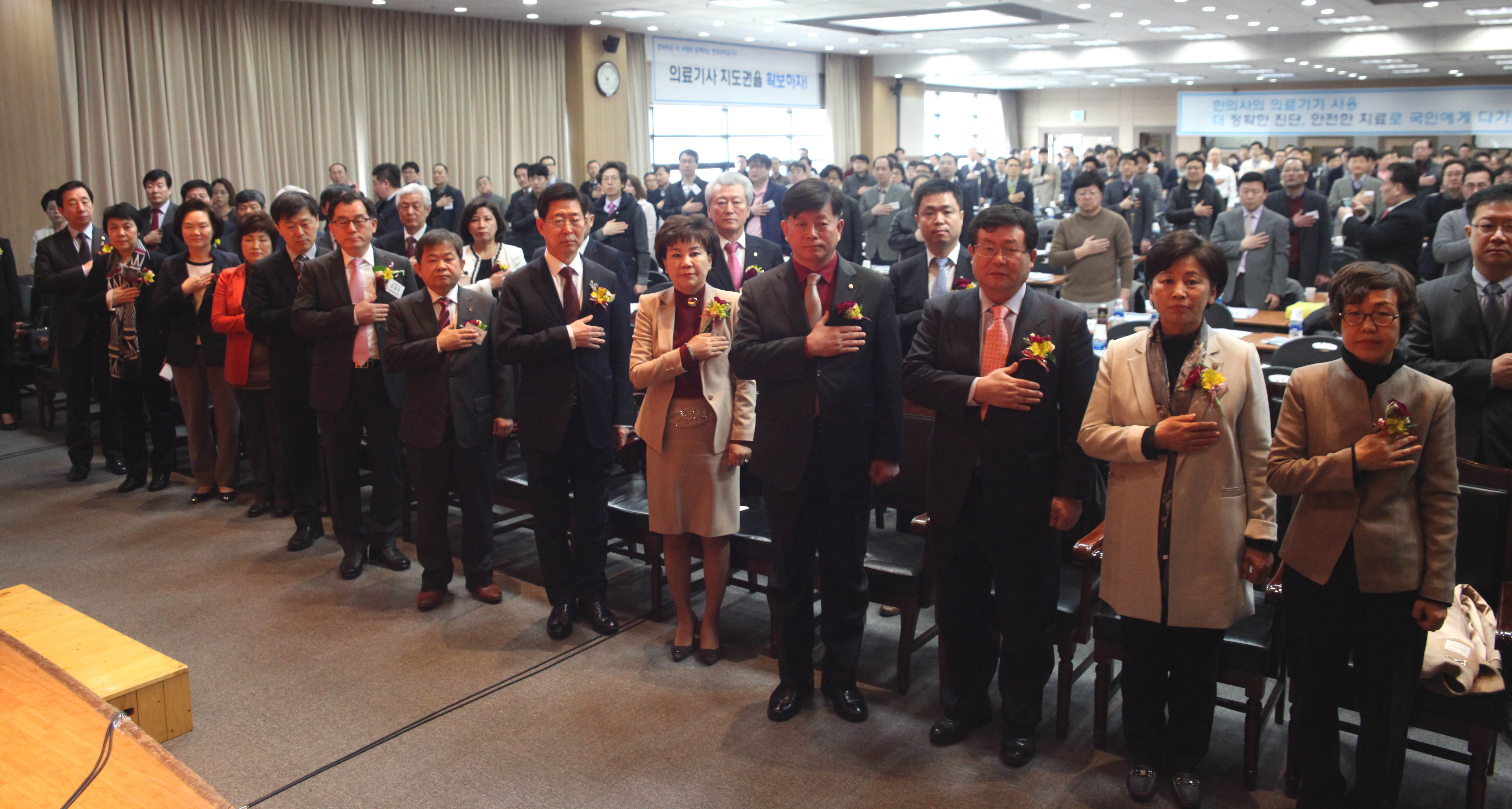 지난달 26일 제62회 대한한의사협회 정기대의원총회가 한의협회관 5층 대강당에서 열리고 있다. 왼쪽부터 김성태·정춘숙·윤종필·전혜숙의원, 이형훈 복지부 한의약정책관, 최재호 한의협 전 의장, 김필건 한의협 회장, 양승조·김순례·김명연·설훈·남인순·권미혁 의원.