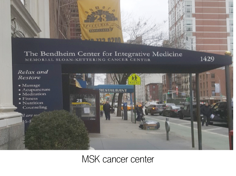 감사하게도 박지혁 선배님은 다음날 메모리얼 슬론케터링 암센터(Memorial Sloan Kettering Cancer center, MSKCC)일하고 계신 윤형준 선배님을 소개해주고 MSKCC 벤드하임 통합의료센터 (Bendheim Integrative Medicine Center)도 둘러볼 수 있게 해주셨다. MSKCC는 MD anderson과 함께 3대 암 센터로 유명하다. MSKCC는 암 환자들에 대한 “전인적” 관점에서 치료를 행한다.