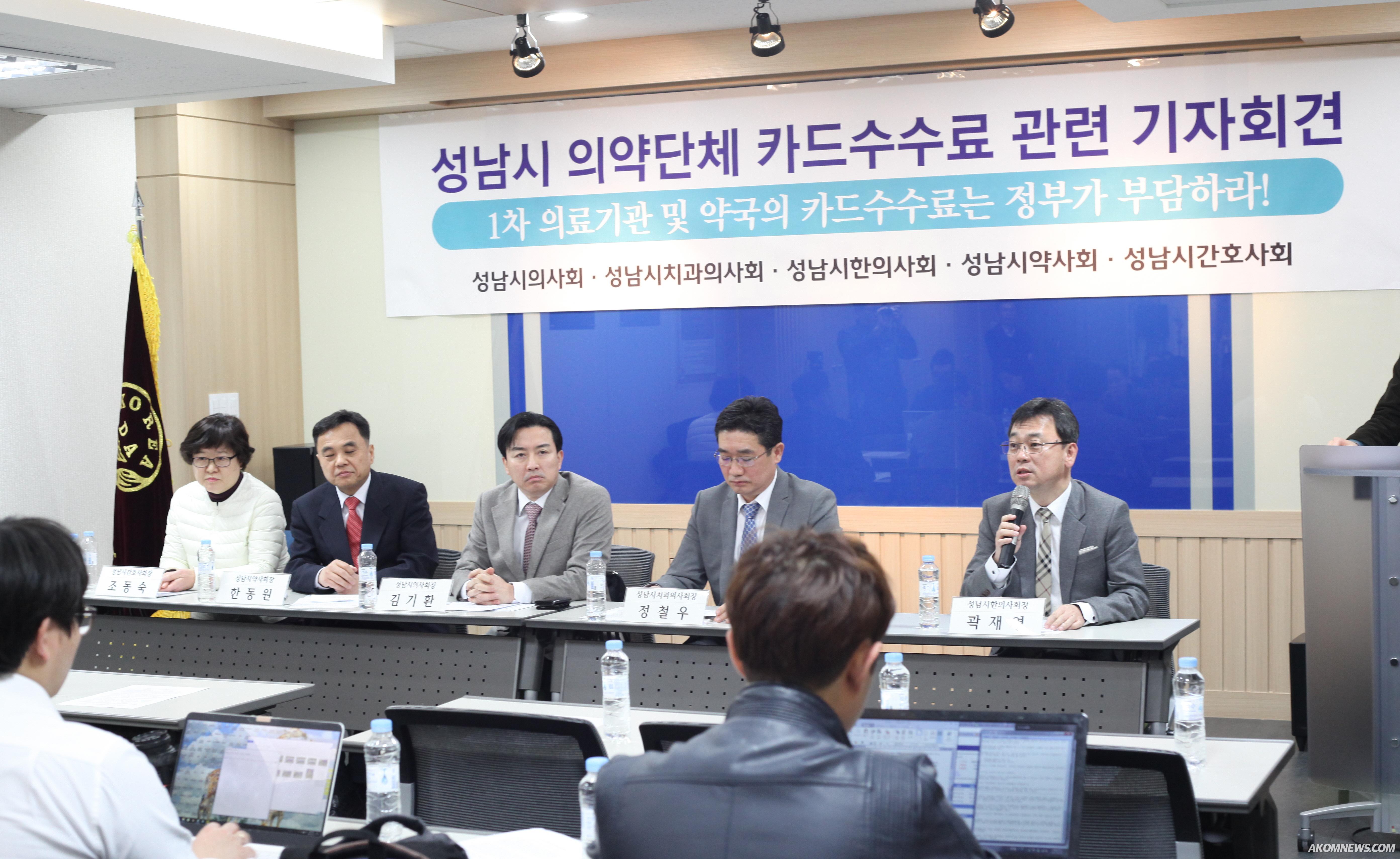 성남시의약단체는 지난 16일 경기도 성남시한의사회관에서 의약단체 카드수수료 관련 기자회견을 열고, 공동 성명서를 발표했다.