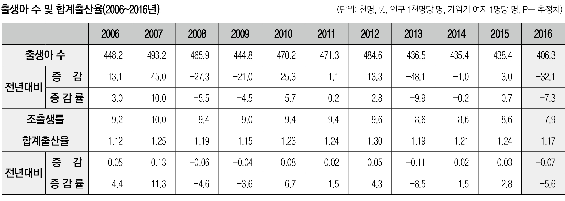 [한의신문=강환웅 기자]통계청이 지난달 22일 발표한 '2016년 출생·사망통계(잠정)' 결과에 따르면 2016년 출생아 수는 40만 6300명으로 2015년보다 3만 2100명(7.3%)이 줄었으며, 여성 1명이 평생 낳을 것으로 예상되는 평균 출생아 수(합계출산율)도 1.24명에서 1.17명으로 0.07명(5.6%) 줄었다.