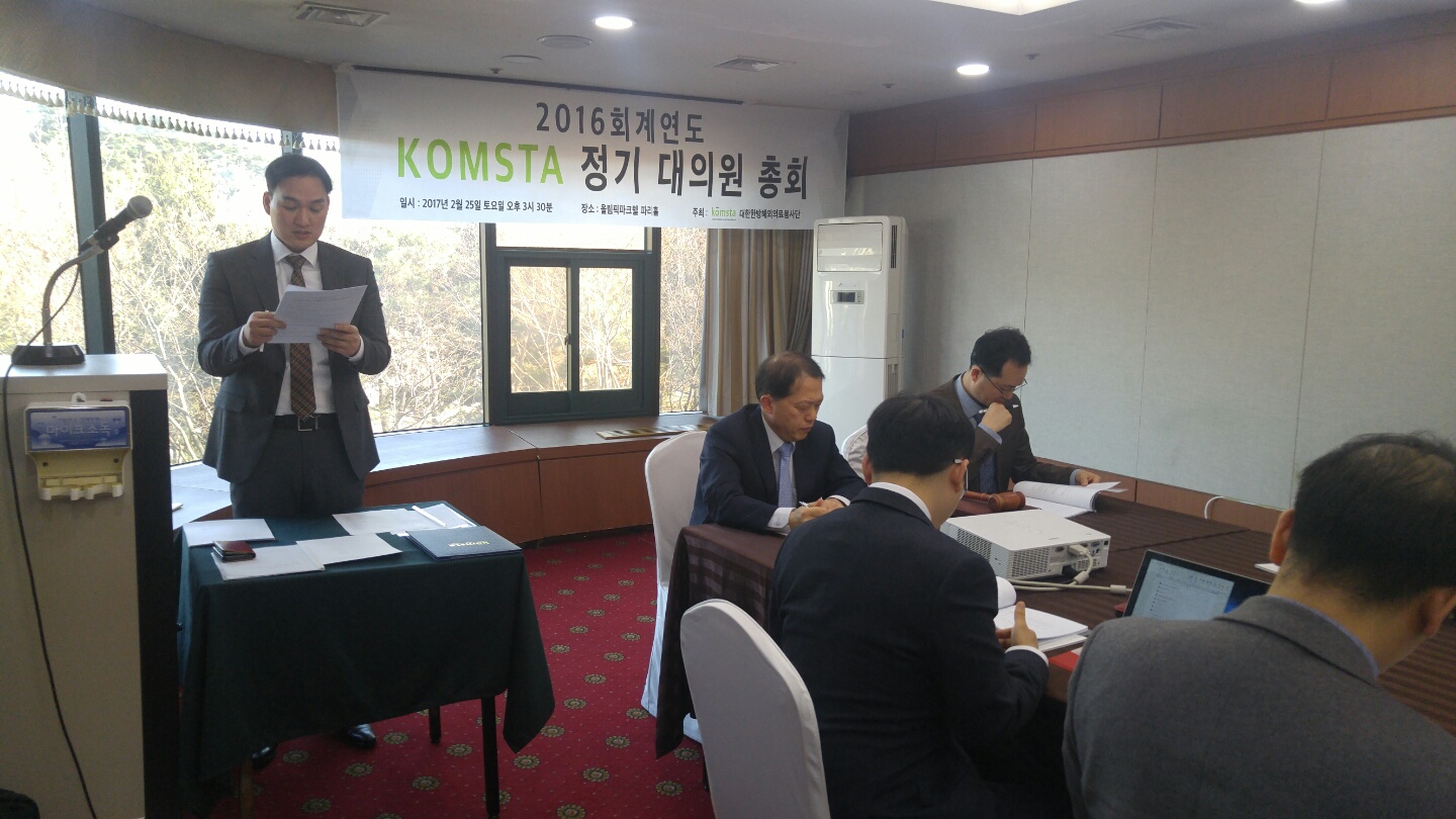 KOMSTA가 지난 2월 25일 서울 송파구 올림픽파크텔에서 2016 회계연도 정기총회를 개최하고 있다.