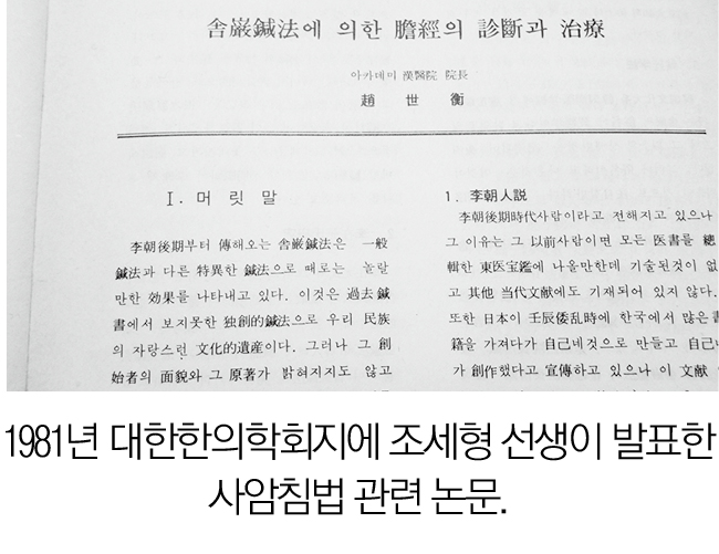 1981년 趙世衡 先生이 밝혀낸 舍巖鍼法의 실체