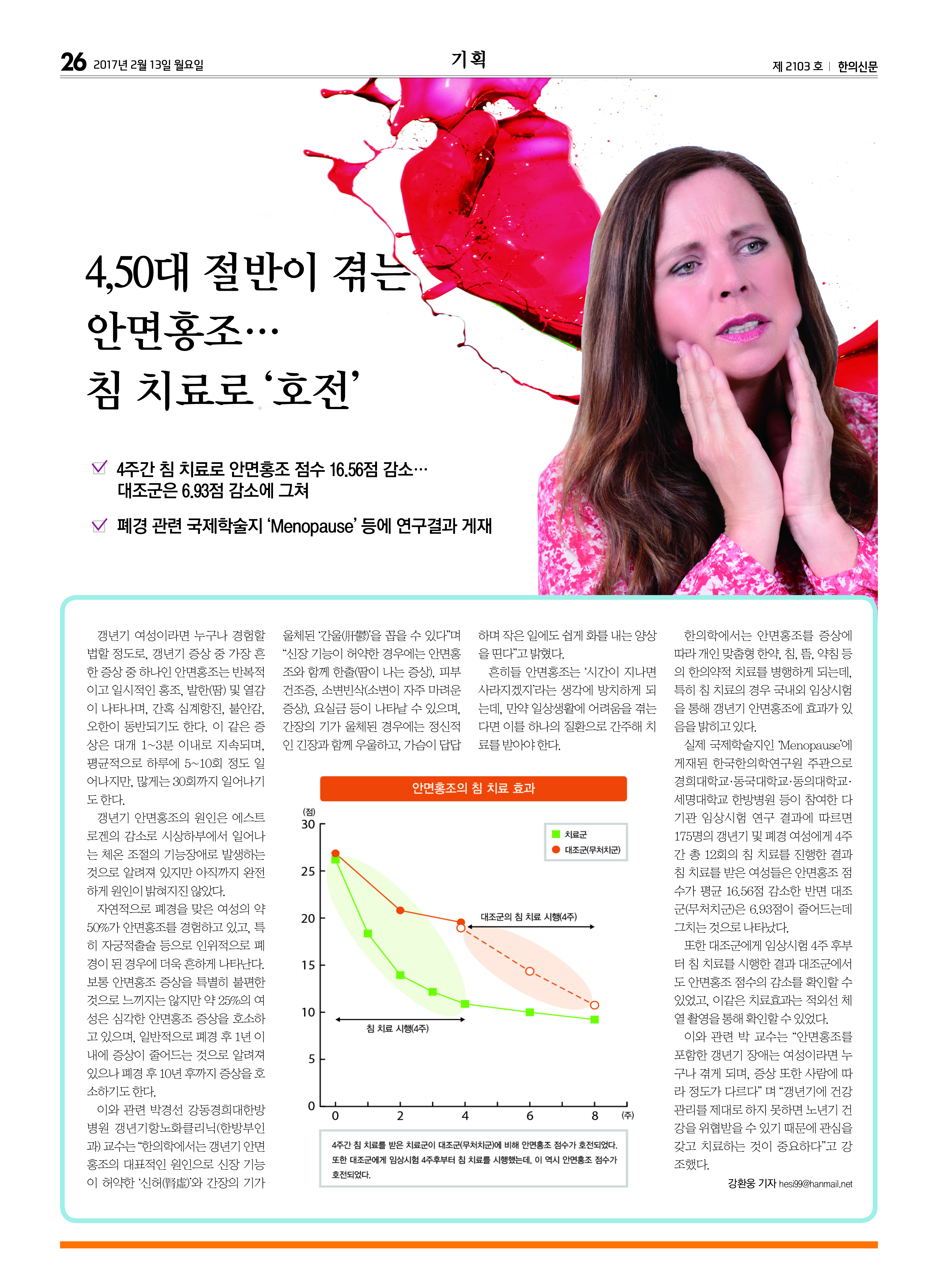 4,50대 절반이 겪는 안면홍조…침 치료로 ‘호전’