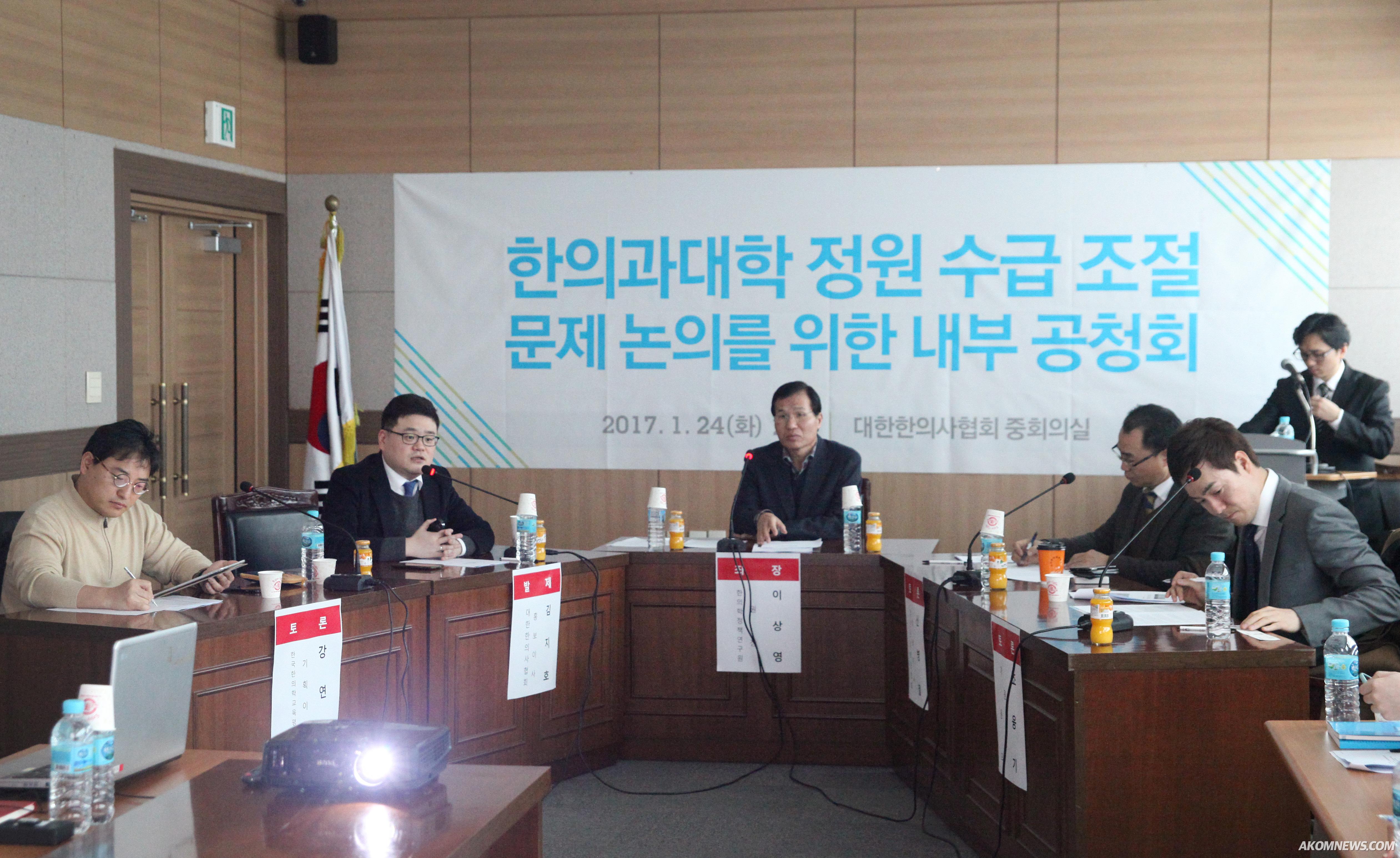 지난 24일 대한한의사협회 중회의실에서 ‘한의과대학 정원수급 조절 문제 논의를 위한 내부 공청회’가 열리고 있다.