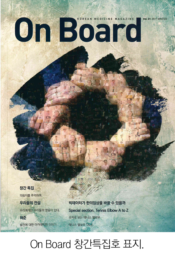 한의학 매거진 On Board는 임상과 학술을 주로 다루지만 학술지라는 틀에 갇히기보다 한의사의 일상까지 깊이 파고드는 재미있는 잡지가 되고 싶다.