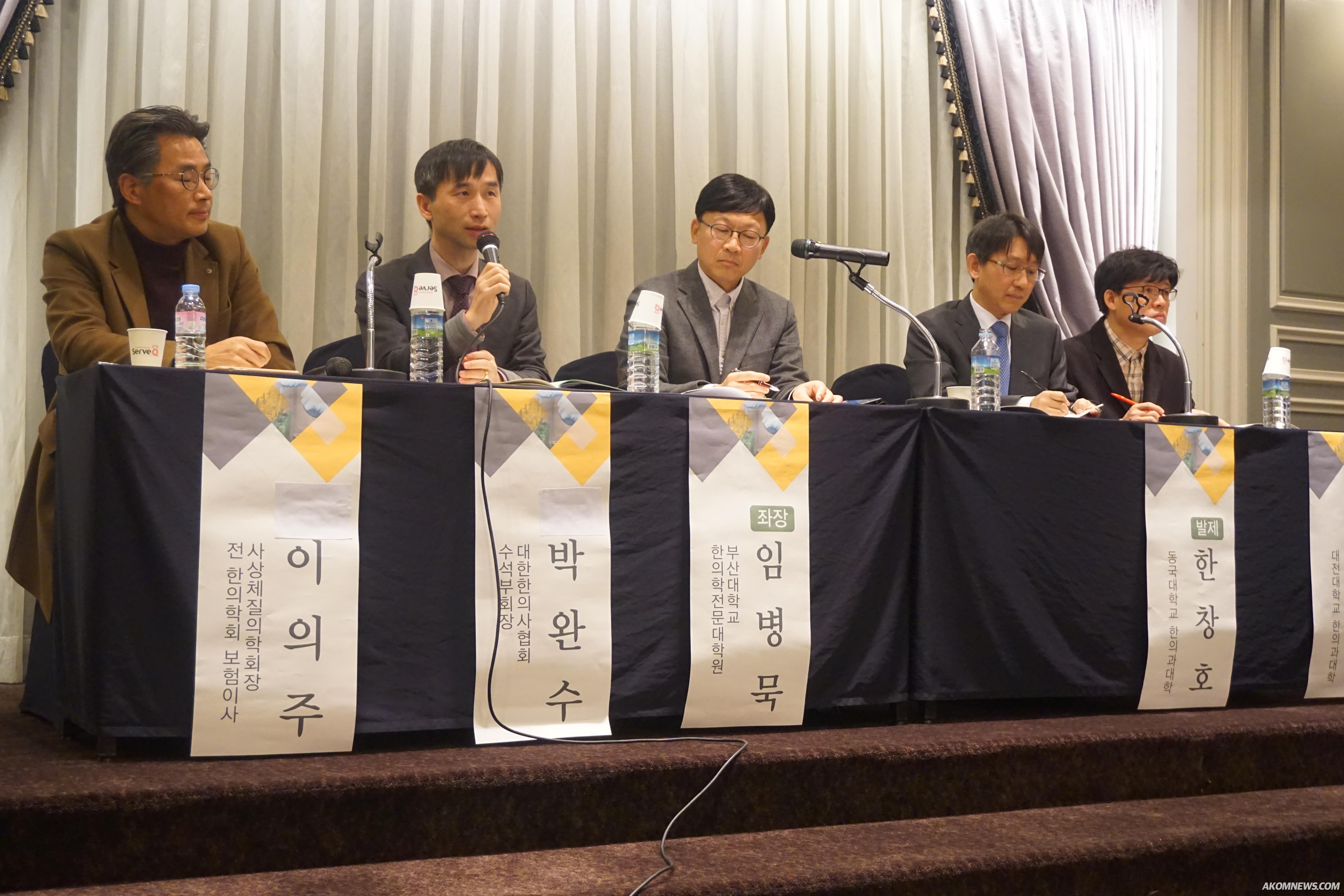 지난 14일 서울 여의도 켄싱턴호텔 그랜드 스테이션홀에서 열린 '제3차 한의약보건정책포럼'에서 박완수 대한한의사협회 수석부회장이 발표를 하고 있다.