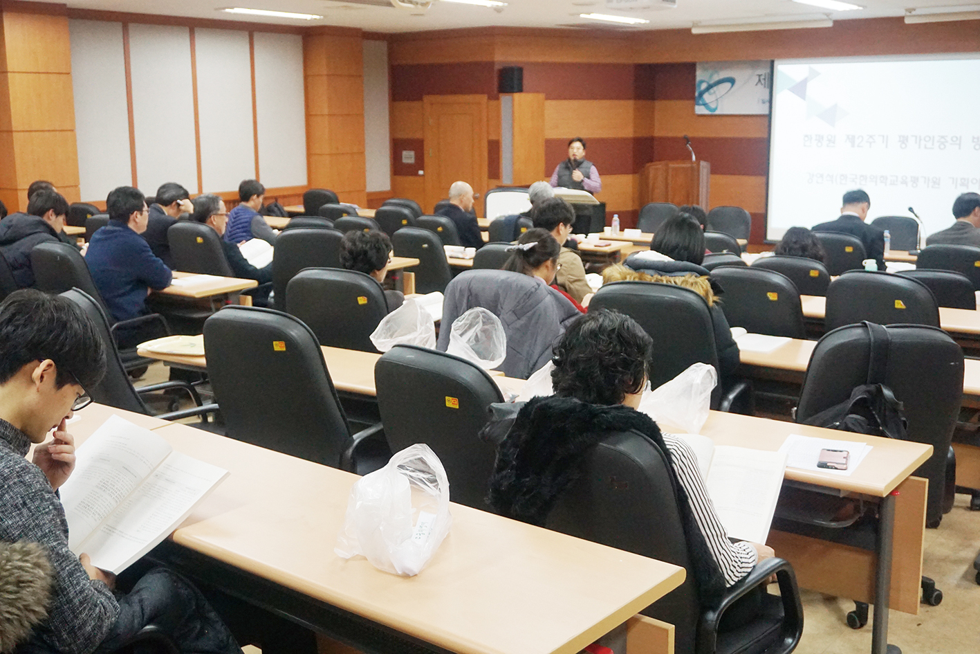 ‘제2주기 한의학교육 평가인증 사업설명회’가 지난 달 29일 원광대학교 한의과대학 세미나실에서 열리고 있다. [/caption]