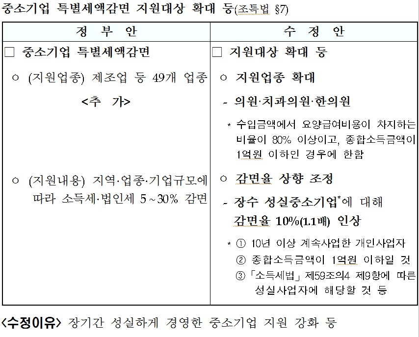 한의원 등 의원급 의료기관, 중소기업 특별세액감면 지원대상 포함