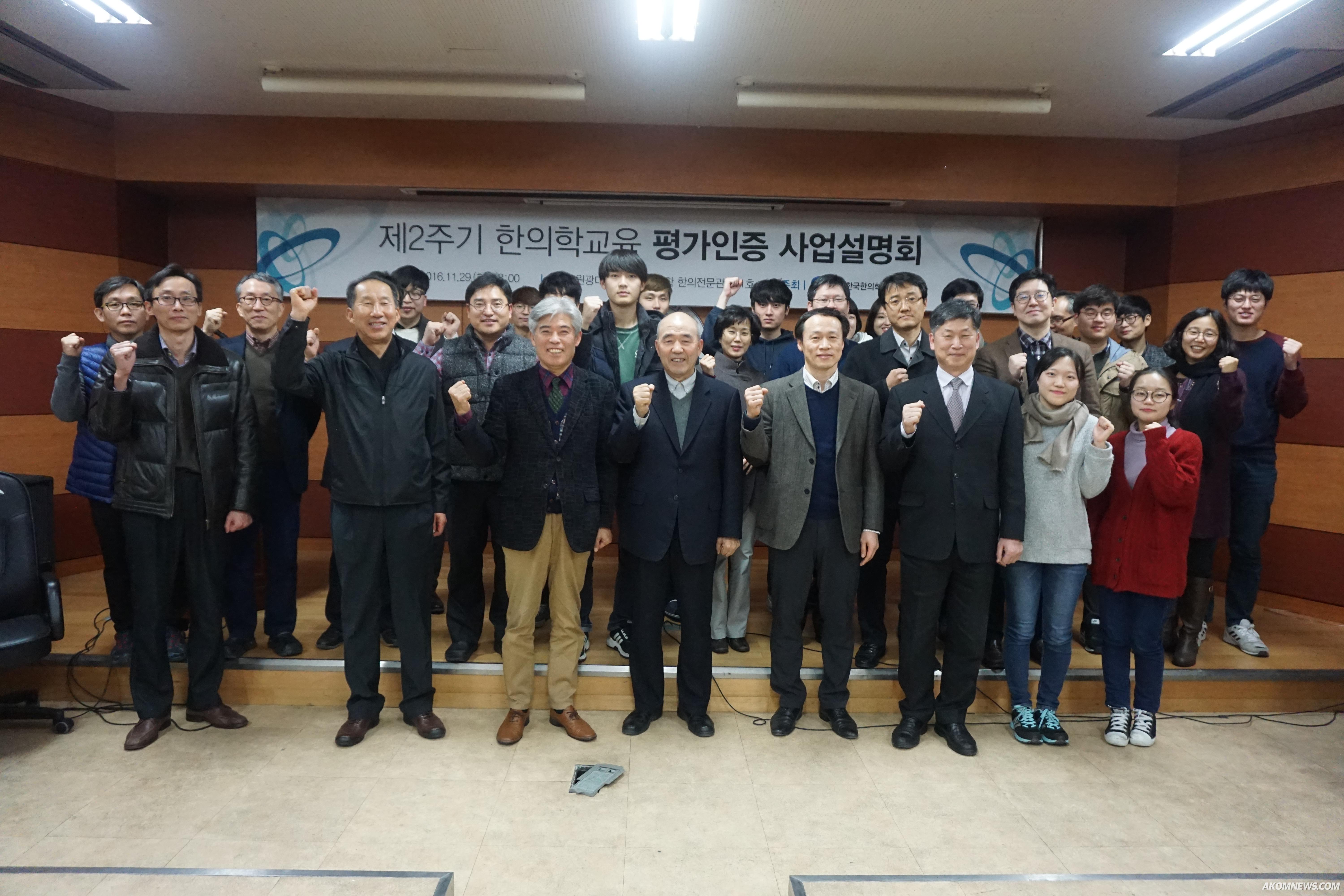 '제2주기 한의학교육 평가인증 사업설명회'에 참여한 학생‧교수 등이 지난 달 29일 원광대학교 한의과대학 세미나실에서 한의학 발전을 다짐하고 있다.[/caption]