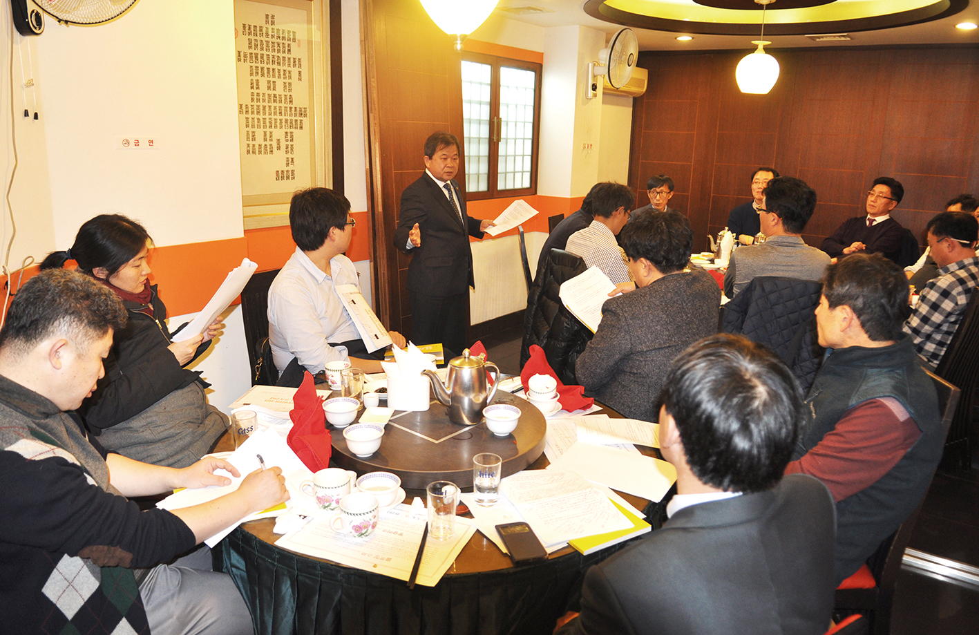 대한한의사협회 김필건 회장이 지난달 24일 전라남도한의사회와의 정책간담회에서 현안에 대해 설명하고 있다.