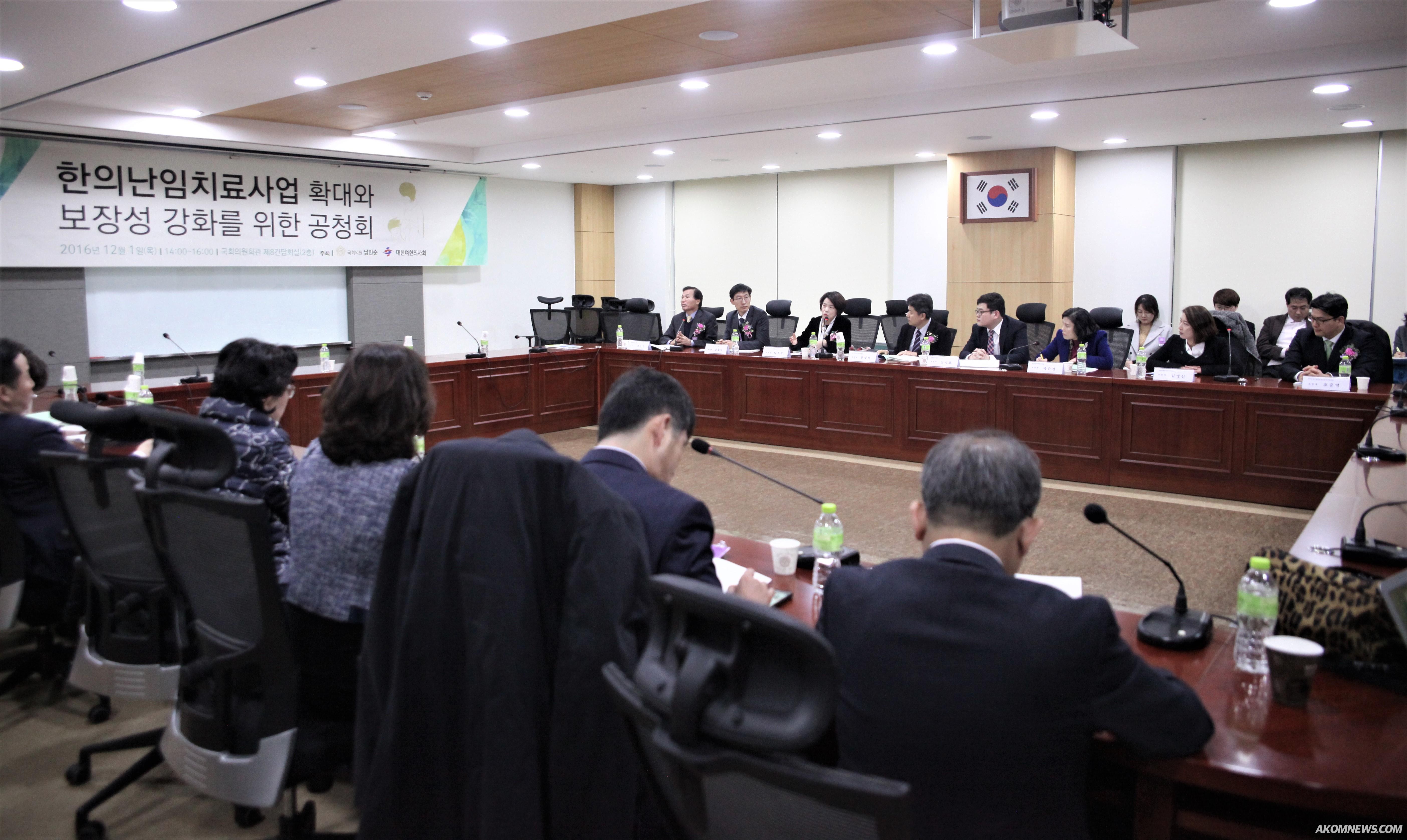 지난 1일 국회의원회관 제8간담회실에서 '한의난임치료사업 확대와 보장성 강화를 위한 공청회'가 열리고 있다. [한의신문=김지수 기자]