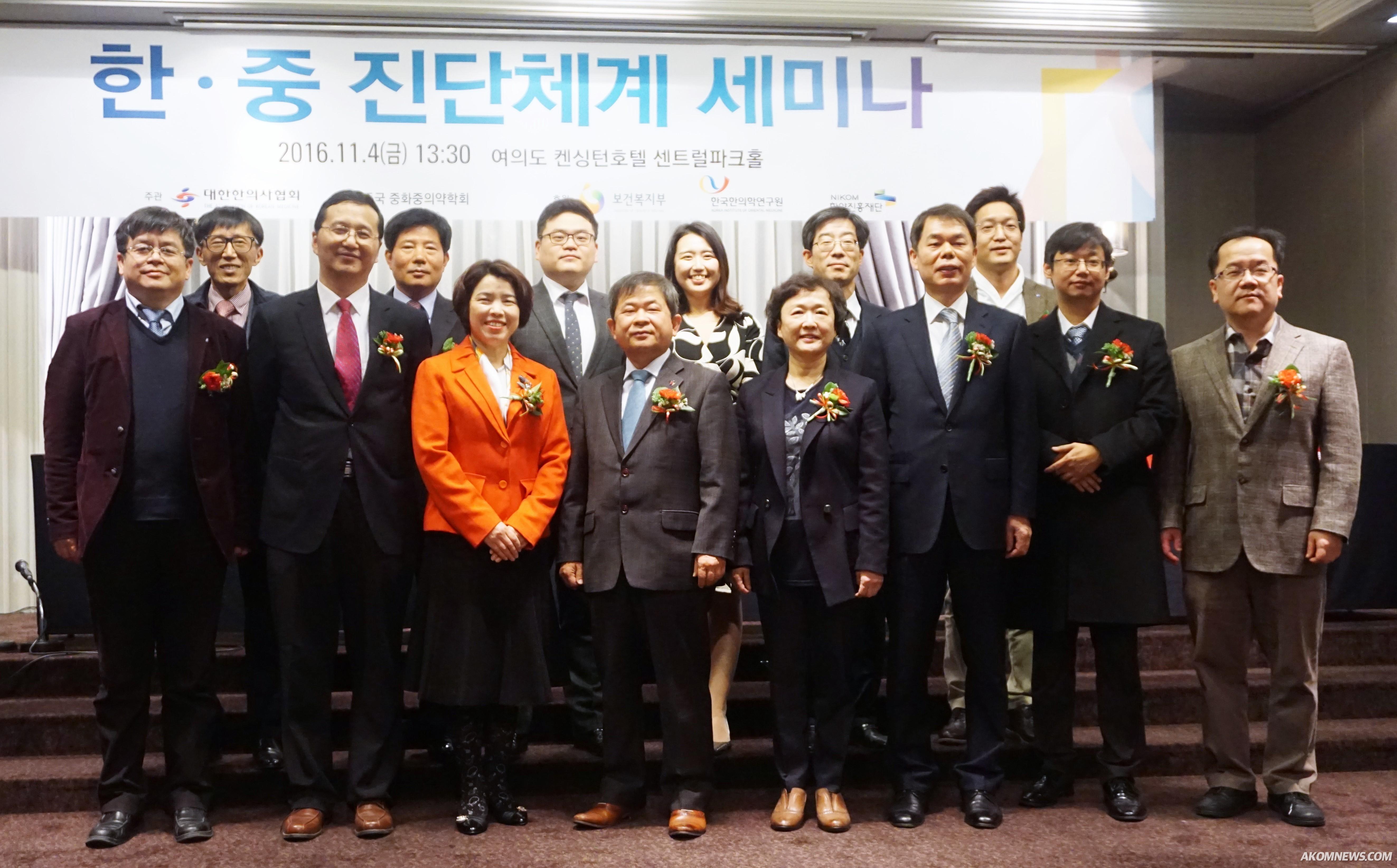 '한·중 진단체계 세미나'에 참석한 내외빈들이 기념촬영을 하고 있다.