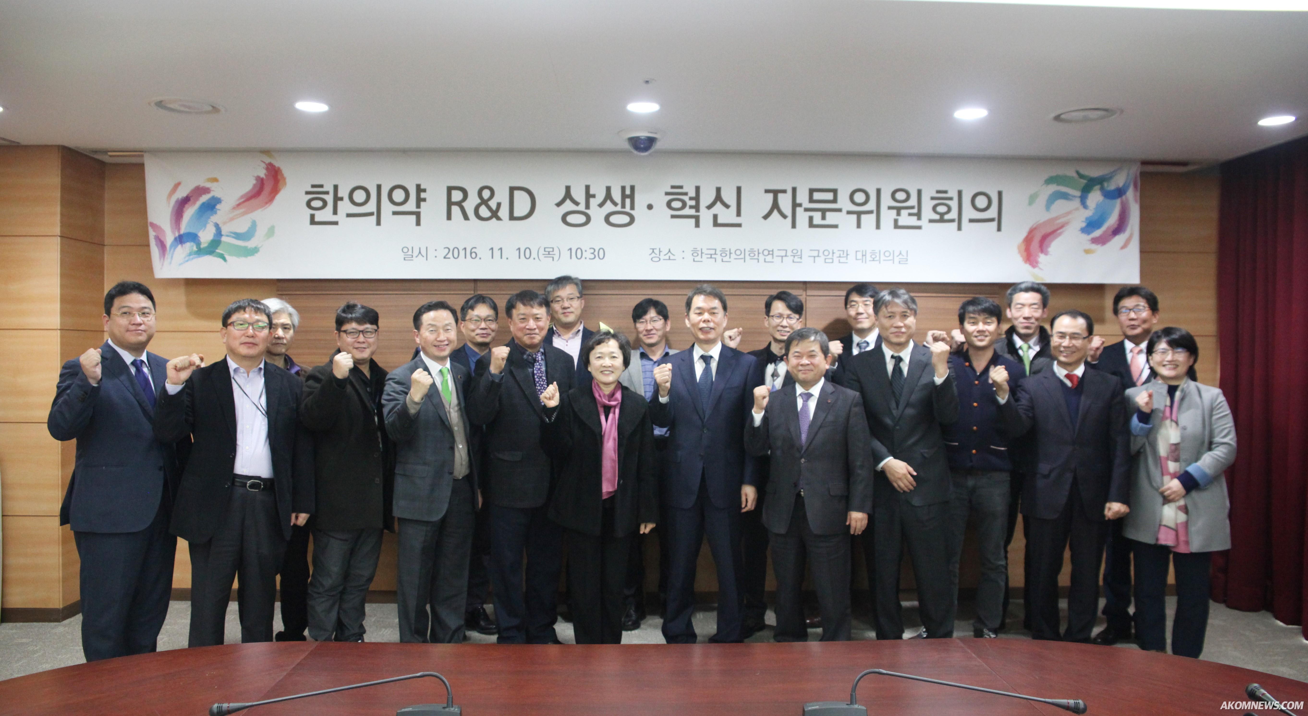 '한의약 R&D 상생·혁신 자문위원회의'를 마친 뒤 참석자들이 기념 사진을 찍고 있다.[한의신문=김지수 기자]