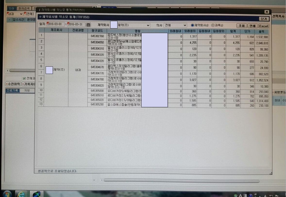 ◇지역보건의료정보시스템을 활용해 제약사별 월 처방내역을 영업사원에게 텔레그램을 이용해 전송한 사진.