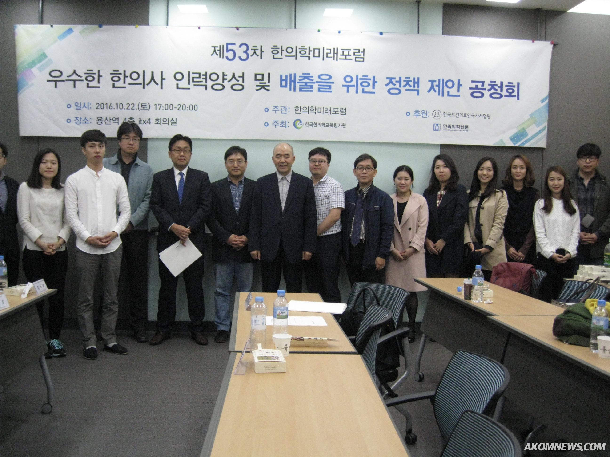 [한의신문=민보영 기자] 제53차 한의학미래포럼이 지난 22일 오후 5시 서울 용산역 Itx4회의실에서 '우수한 한의사 인력양성 및 배출을 위한 정책 제안'을 주제로 공청회를 진행했다.