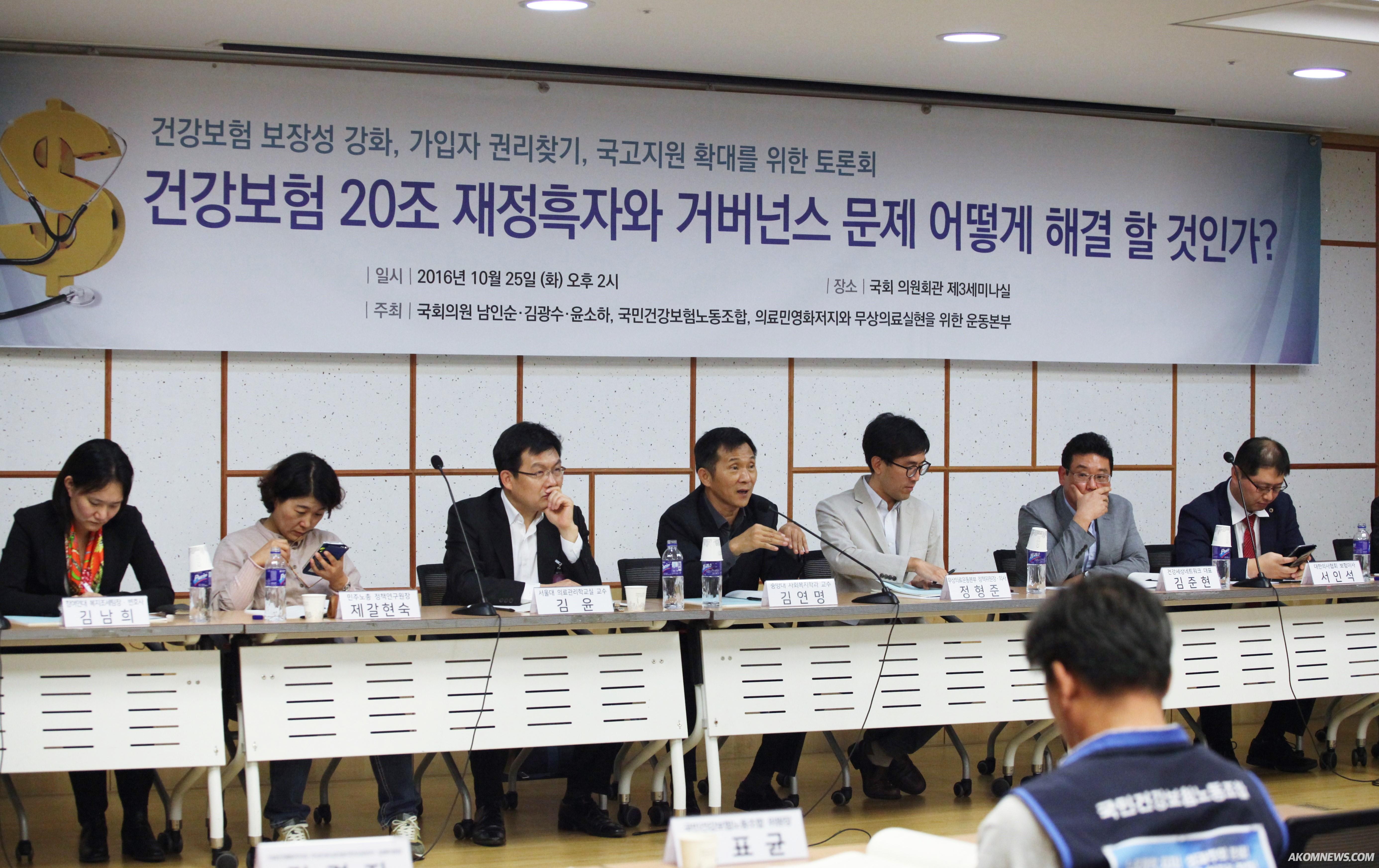 지난 25일 남인순 더불어민주당(이하 더민주당) 의원 주최로 국회 의원회관에서 열린 '건강보험 20조 재정흑자와 거버넌스 문제 어떻게 해결할 것인가?' 토론회에서 '건강보험 누적흑자 운용의 문제점과 거버넌스 문제'를 주제로 발표한 정형준 무상의료운동본부 정책위원장은 "건강보험 흑자의 존재가 상징하는 것은 의료복지의 긴축"이라며 "제공해야 하는 의료서비스를 제공하지 않았거나, 본인부담금을 높여 돈을 남겼거나, 보험료를 많이 걷어 돈을 남겼거나, 의료공급자에게 적절한 보상을 하지 않아 돈을 남긴 것이고 쥐어짜기의 대상이 누구였는지 분석할 여지가 있다"고 밝혔다.