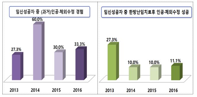 또 보고서에 의하면 임신 성공자 중 인공∙체외수정에 실패했던 경험자는 4년 동안 40명 중 15명으로 평균 37.5%의 수치를 보였다.