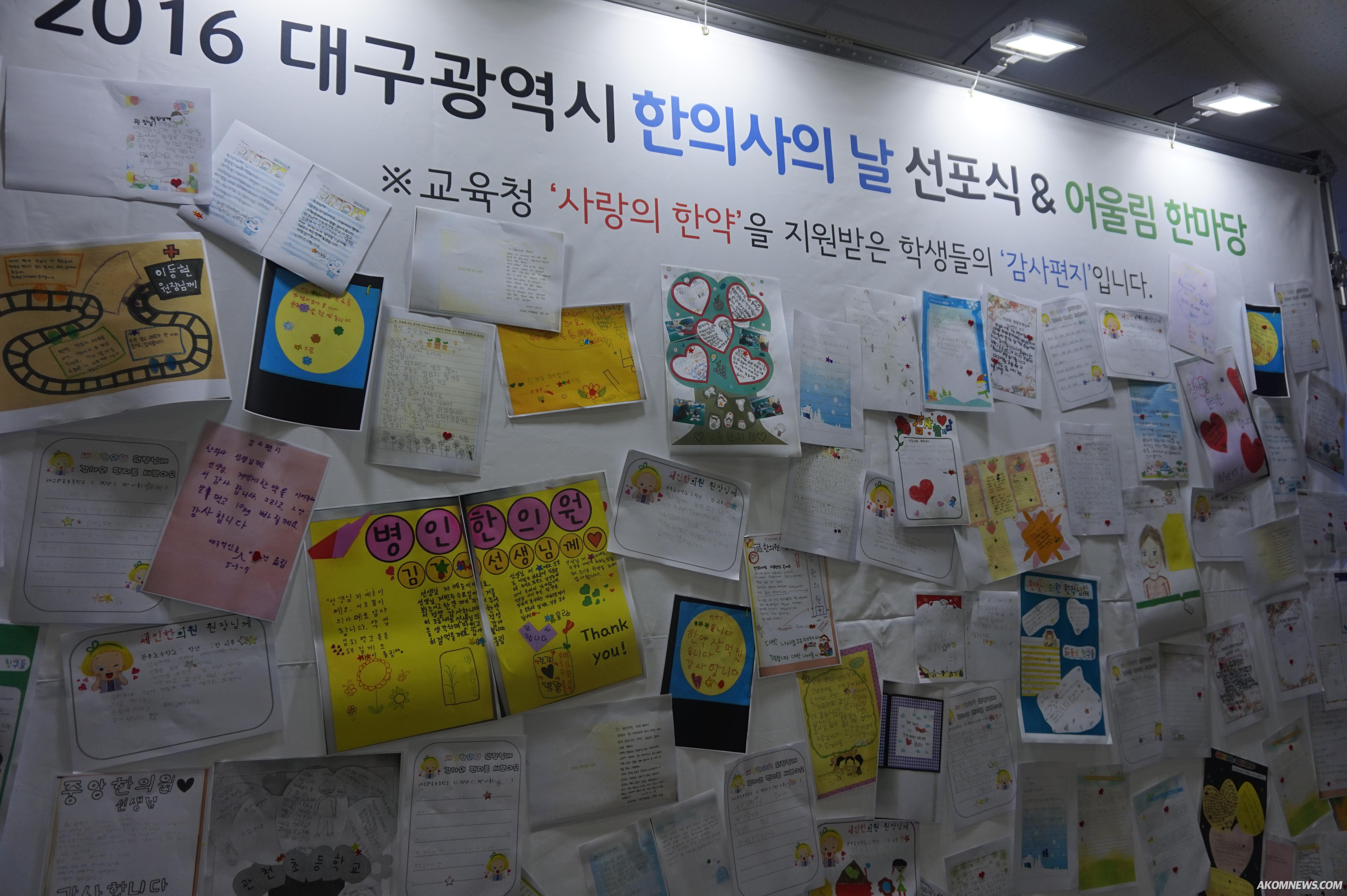 행사장 바깥에는 교육청을 통해 '사랑의 한약'을 지원받은 학생들이 담당 의료인인 한의사에게 보내는 편지가 전시돼 있었다.
