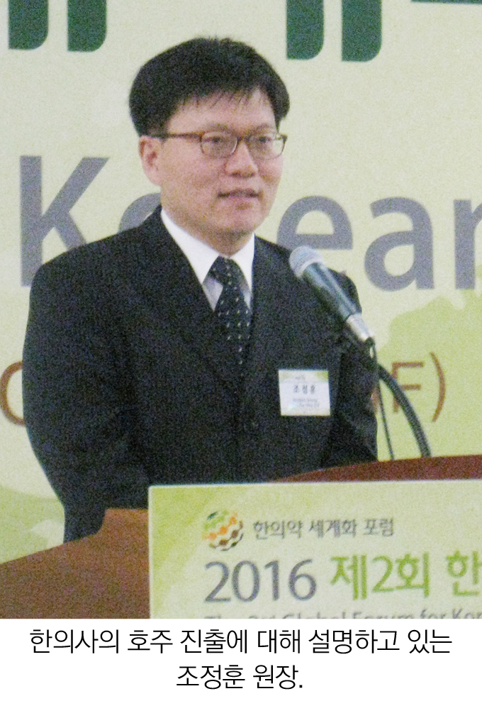 2086-19-1조정훈 원장(Worldciti Orental Medicine Clinic)은 지난 25일 부산 벡스코에서 열린 제2회 한의약 세계화 포럼에서 한의사의 호주 진출을 위한 정보를 공유했다.