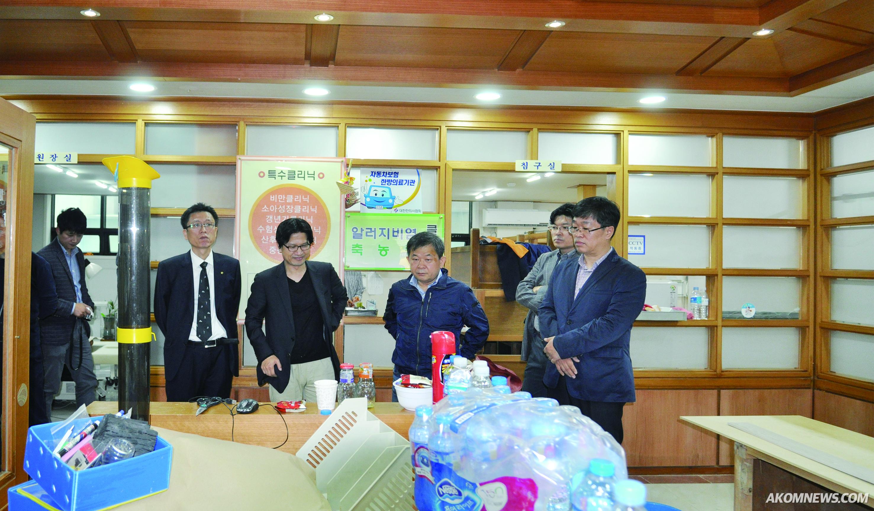 지난 11일 김필건 한의협회장이 울신시 중구 태화시장내 피해 한의원을 긴급 방문하고 피해 상황을 점검하고 있다.