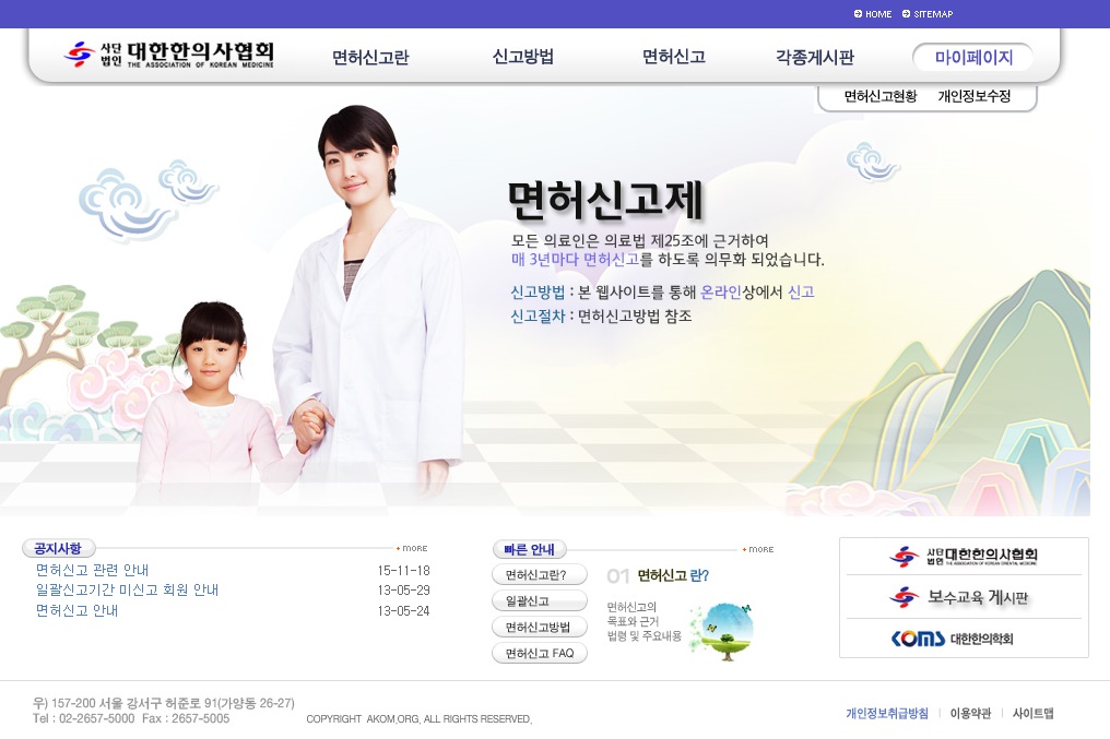 한의사 면허신고는 ‘reg.akom.org’에서 가능