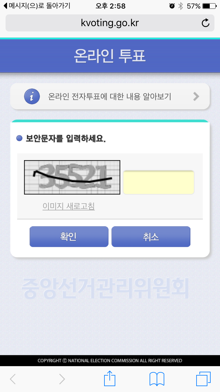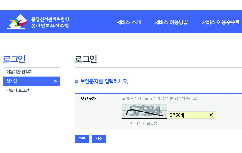 ② 화면에 보이는 보안문자를 입력하고 로그인 해 ‘온라인 투표’ 화면으로 들어간다.