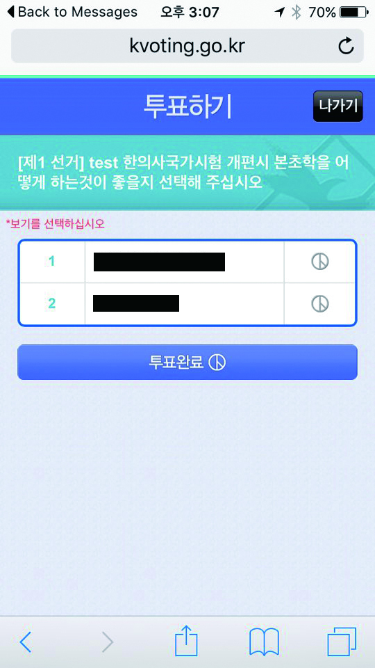 본인의 면허번호가 아닌 다른 번호를 보낼 경우 투표에 참여할 수 없으며 투표할 번호를 다르게 입력할 경우에도 투표가 진행되지 않는다. (답장을 주고받을 때 일정 시간이 소요됨)