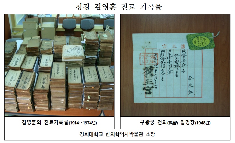 특히 지난 2013년에 국가지정기록물로 지정된 청강 김영훈 한의진료 기록물은 경희대학교 한의학 역사박물관에 소장돼 있다.