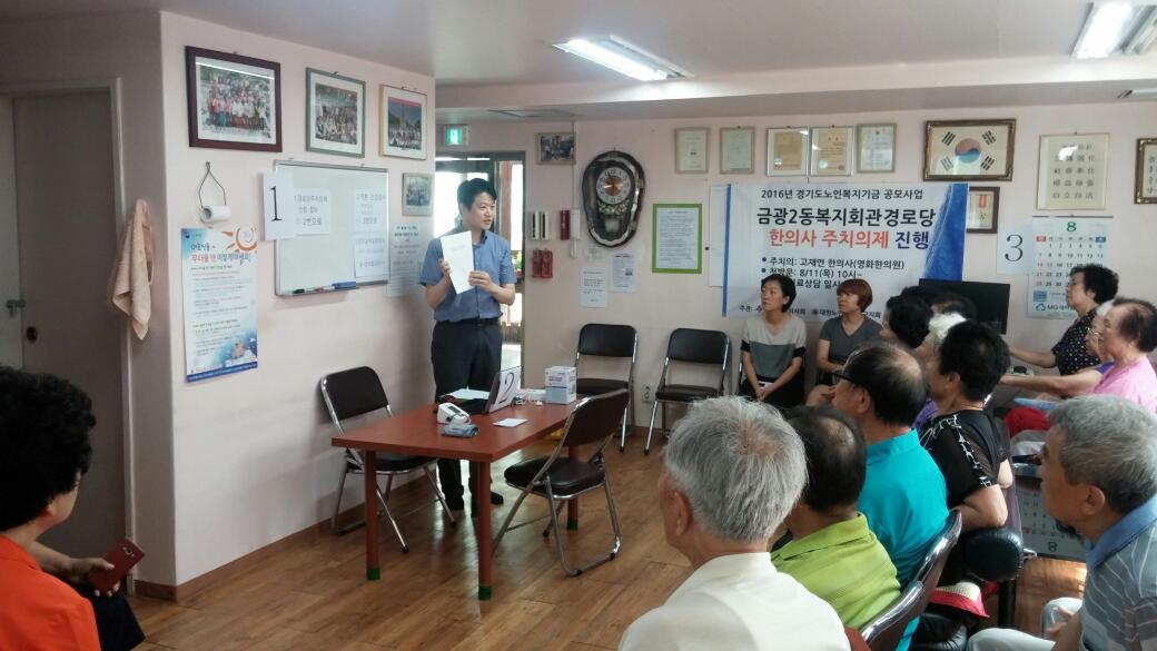 성남시한의사회 역시 2016년 경기도 노인복지기금 공모사업의 일환으로 선정돼 경로당 주치의사업을 지난달부터 오는 12월까지 진행한다.