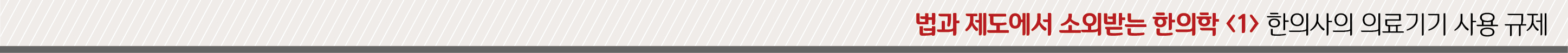 [편집자 주] 우리나라는 한의학과 양의학을 동시에 인정하는 이원적 의료체계를 규정하고 있으면서도 양의학 일변도의 법과 제도의 추진으로 인해 한의학은 각종 정책에서 소외받고 있는 실정이다. 본란에서는 한의사 의료기기 사용 규제를 비롯해 각종 법과 제도에서 소외받고 있는 한의학의 현황 및 이에 대한 문제점을 살펴본다.