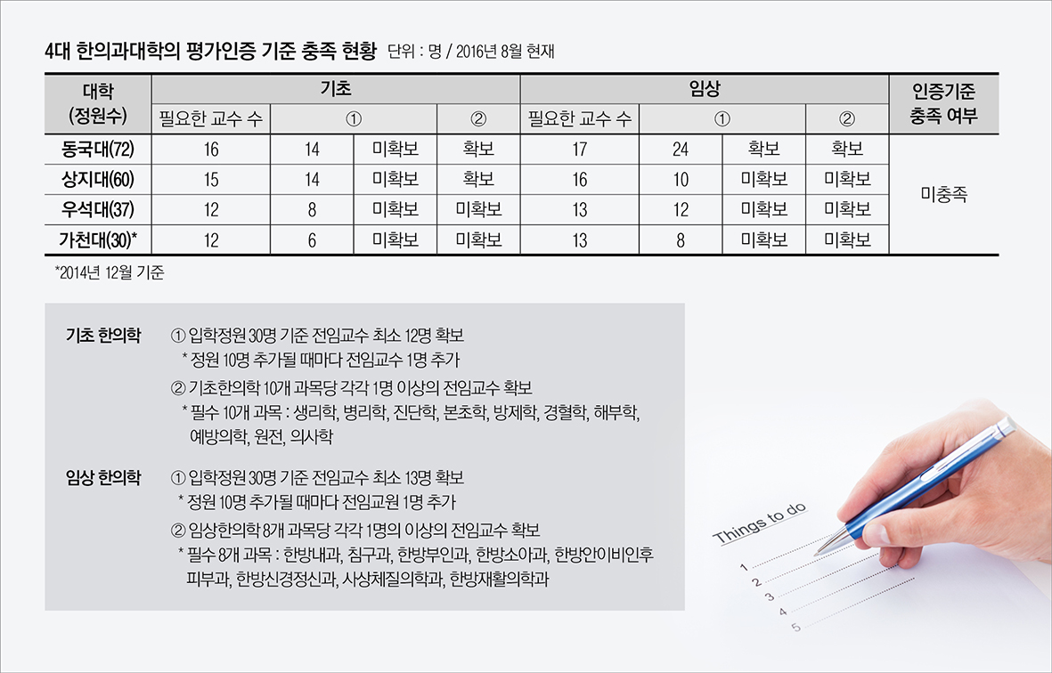 확인 결과 2016년 8월 현재 입학 정원 72명인 동국대의 임상의학 전임교수는 24명으로, 17명을 충족해야 하는 한평원 기준을 충분히 충족하는 것으로 나타났다.