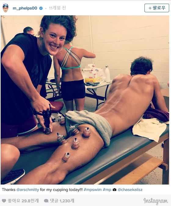 한편 최근 미국 대표팀 체조선수 알렉스 나도어도 어깨에 부항 자국이 선명하게 나 있는 사진을 인스타그램에 올려 주목을 받았다.