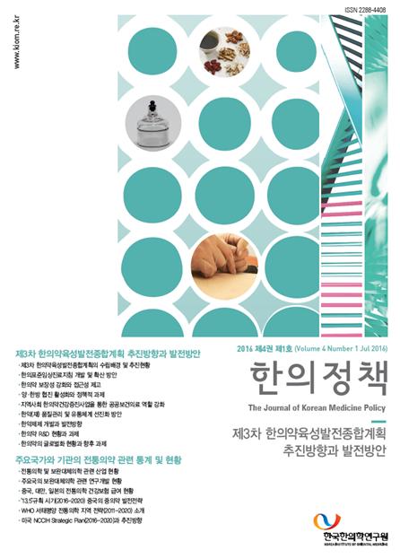 또 이번 특집호는 중국의 '제13차 5개년 계획'과 미국 국립보완통합보건센터(NCCIH)의 '제4차 발전 전략', WHO 서태평양 전통의학 지역 전략과 같은 전통·통합의학과 관련된 최근의 해외 동향을 살펴 한의약 발전 방향에 화두를 던졌다.
