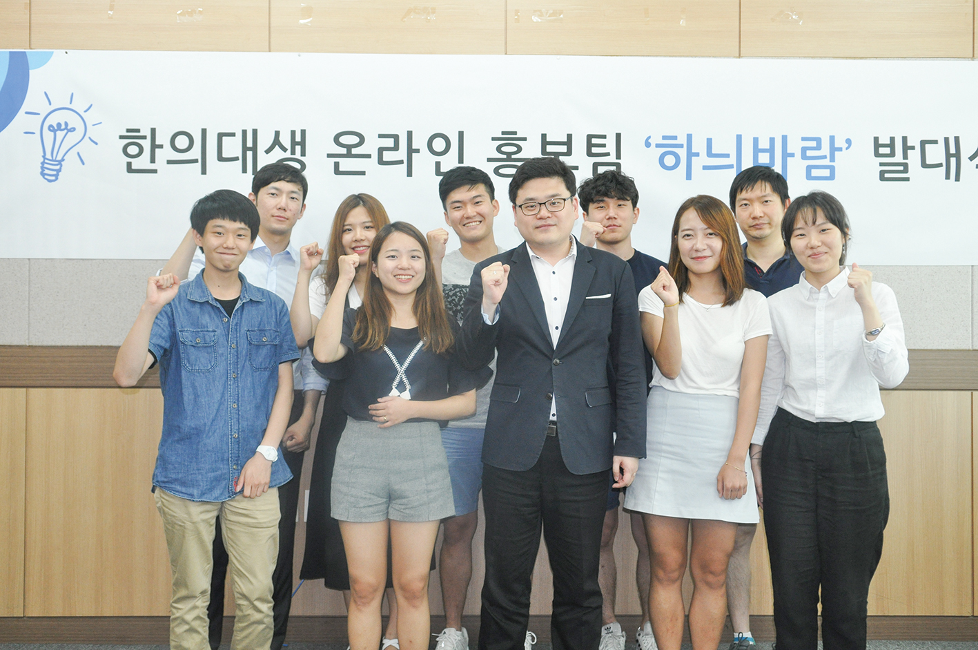 한의대생 온라인 홍보팀 ‘하늬바람’에 참여한 한의과대 학생들이 지난 12일 한의협 회관에서 김지호 한의협 홍보이사와 기념촬영을 하고 있다.