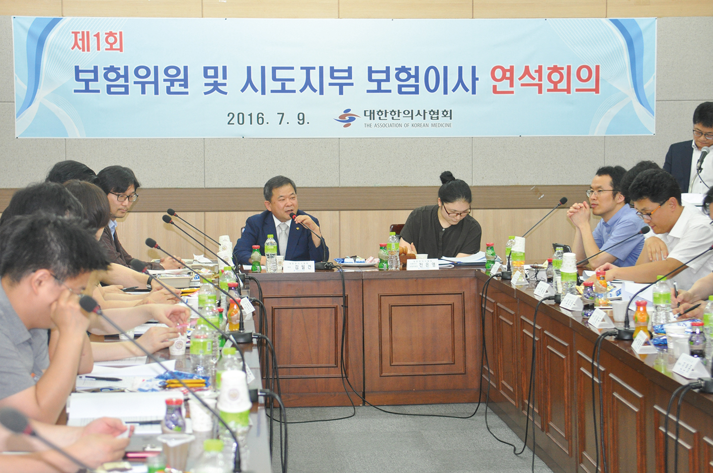 지난 9일 한의협회관에서 열린 ‘제1회 시도 보험이사 연석회의’에서 김필건 한의협회장이 인사말을 하고 있다.