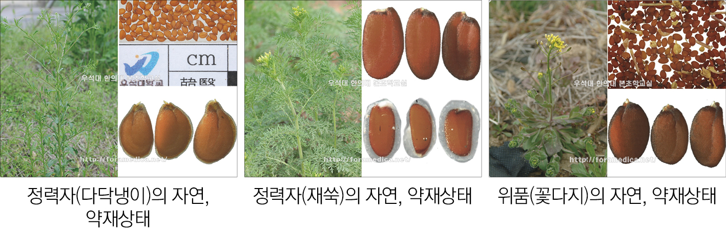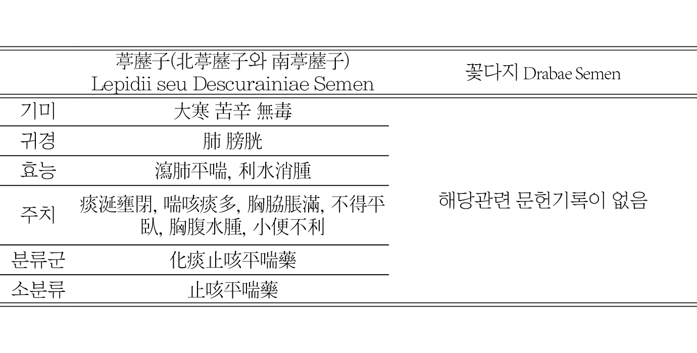 2) 葶藶子의 경우, 전혀 문헌적 근거가 없는 위품인 꽃다지 Draba nemorosa var. hebecarpa가 사용되어져서는 안될 것이다.