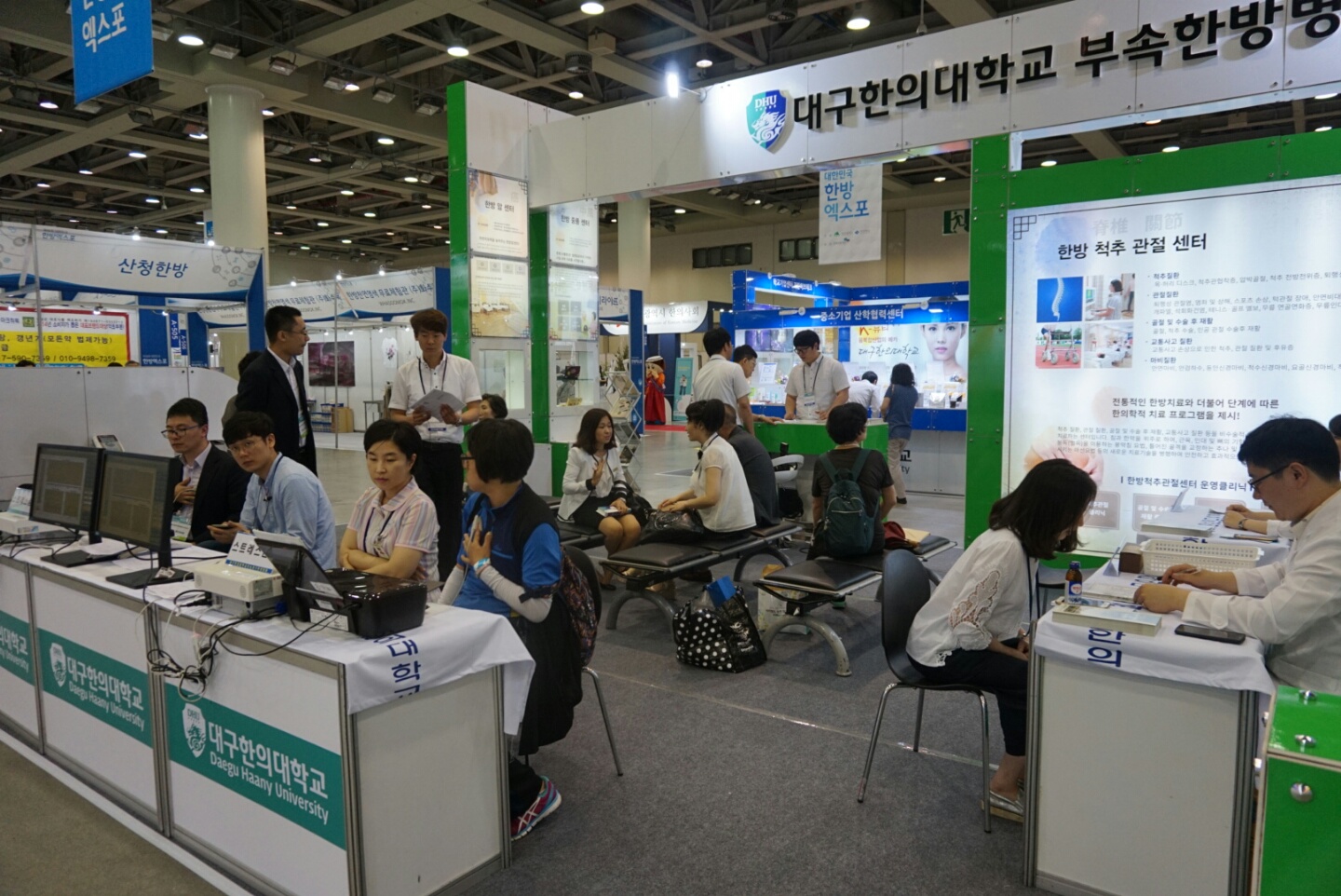 △한방화장품관에서는 국내 우수 한약재를 원료로 한 화장품 소개 및 홍보 △한방병·의원관에서는 한의선도기술 소개와 무료진료를 통해 한의학의 우수성 홍보 △ 한방건강식품관에서는 한약재를 원료로 한 한방건강식품 소개 및 홍보 △기관·단체․협회관 시·도 및 지방자치단체, 연구기관, 한의(약)관련 단체 홍보 △한방체험관에서는 한방천연염색, 추나치료, 한의무료진료, 한방스포츠마사지, 건강상담 등이 진행됐다.