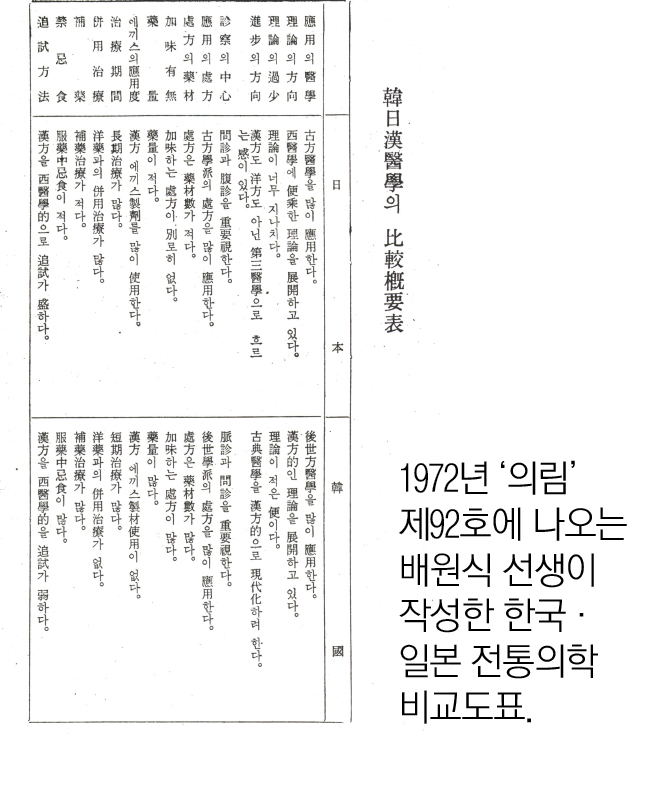 1972년 裵元植 先生의 한국·일본 전통의학 비교
