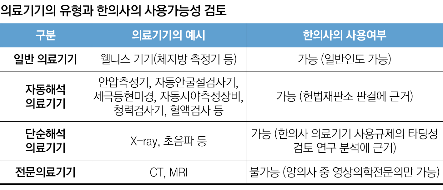 단순히 양방에서 영상의학과 등 의료기기의 활용 및 해석과 관련된 전문적인 진료과목이 있다 하더라도 그것의 존재만으로 의료기기 사용이 양방의 영역에만 국한된다는 결론을 내릴 수 없다.