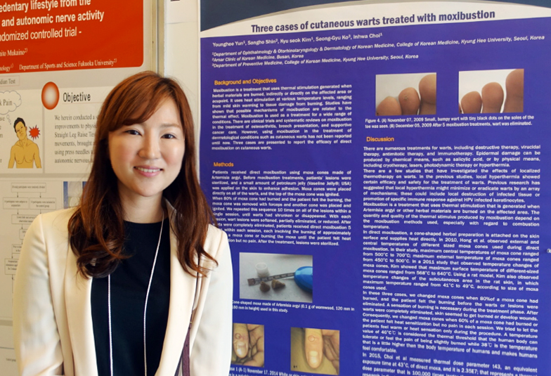 이번 ICOM에서 윤 교수가 발표한 '다른 치료에 반응하지 않았던 손발 사마귀를 뜸으로 치료한 증례군 연구' 결과는 사람 유두종 바이러스(HPV)에 의해 생기는 사마귀를 뜸으로 제거할 수 있다는 최초의 발표여서 눈길을 끌고 있다.