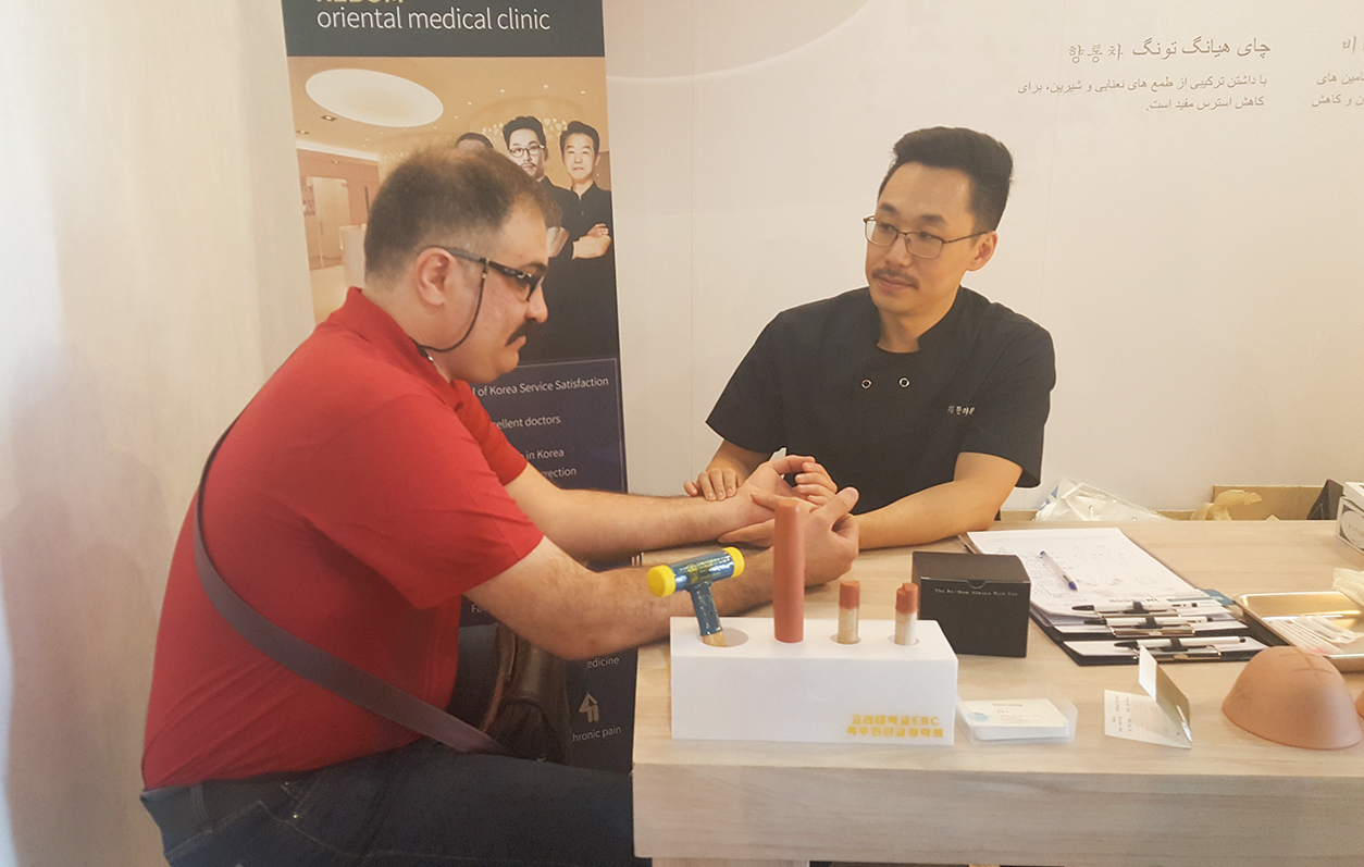 지난 2일 한국의료체험관을 찾은 이란인이 한의진료를 받고 있다.
